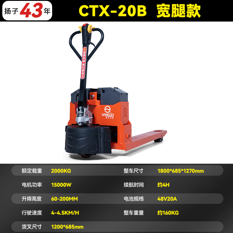 揚(yáng)子半電動(dòng)搬運(yùn)車CTX,電動(dòng)行走強(qiáng)勁載重,永磁無(wú)刷電機(jī)/高品質(zhì)油缸/鉛酸鋰電可選