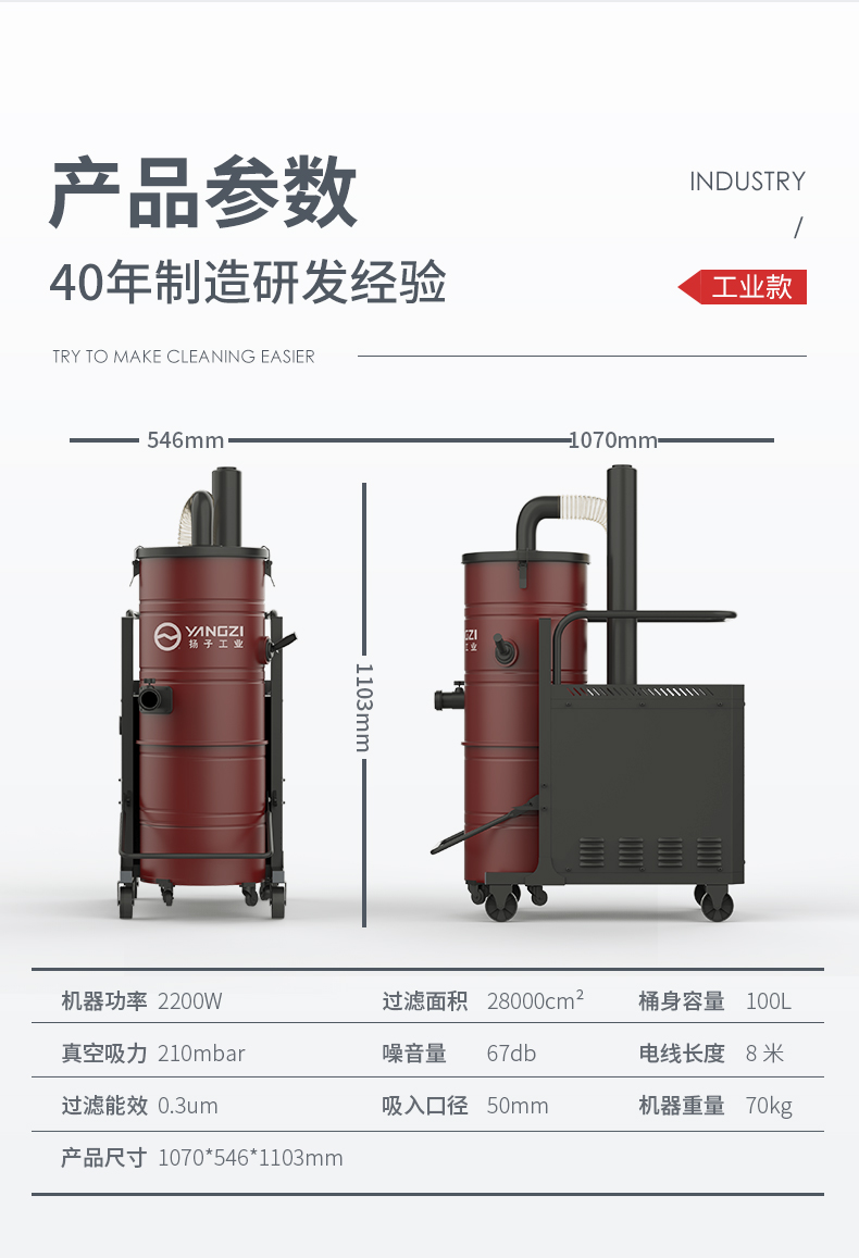 揚子C10工業(yè)吸塵器配備2200W純銅線電機;雙通道散熱模式吸力更持久,強勁真空吸力。升級100L工業(yè)級大容量塵桶,避免使用過程中出現(xiàn)反復傾倒的情況,創(chuàng)新多重過濾系統(tǒng),避免使用過程中出現(xiàn)二次污染問題。