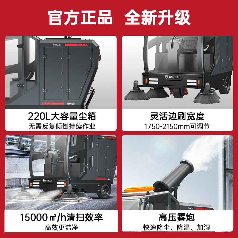 揚子掃地機(jī)YZ-S16,全封閉清掃車,強(qiáng)效清掃,省時省力,掃吸二合一 /無水珠全程霧引/輕松爬坡/簡易控制面板/強(qiáng)勁電機(jī)/LED大燈