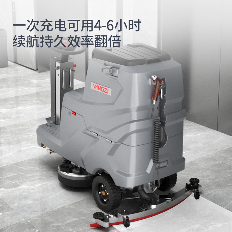 小型高效駕駛式洗地機(jī),選配水槍駐車系統(tǒng),大動(dòng)力吸風(fēng)電機(jī),大容量清污水箱,品牌電池持久續(xù)航